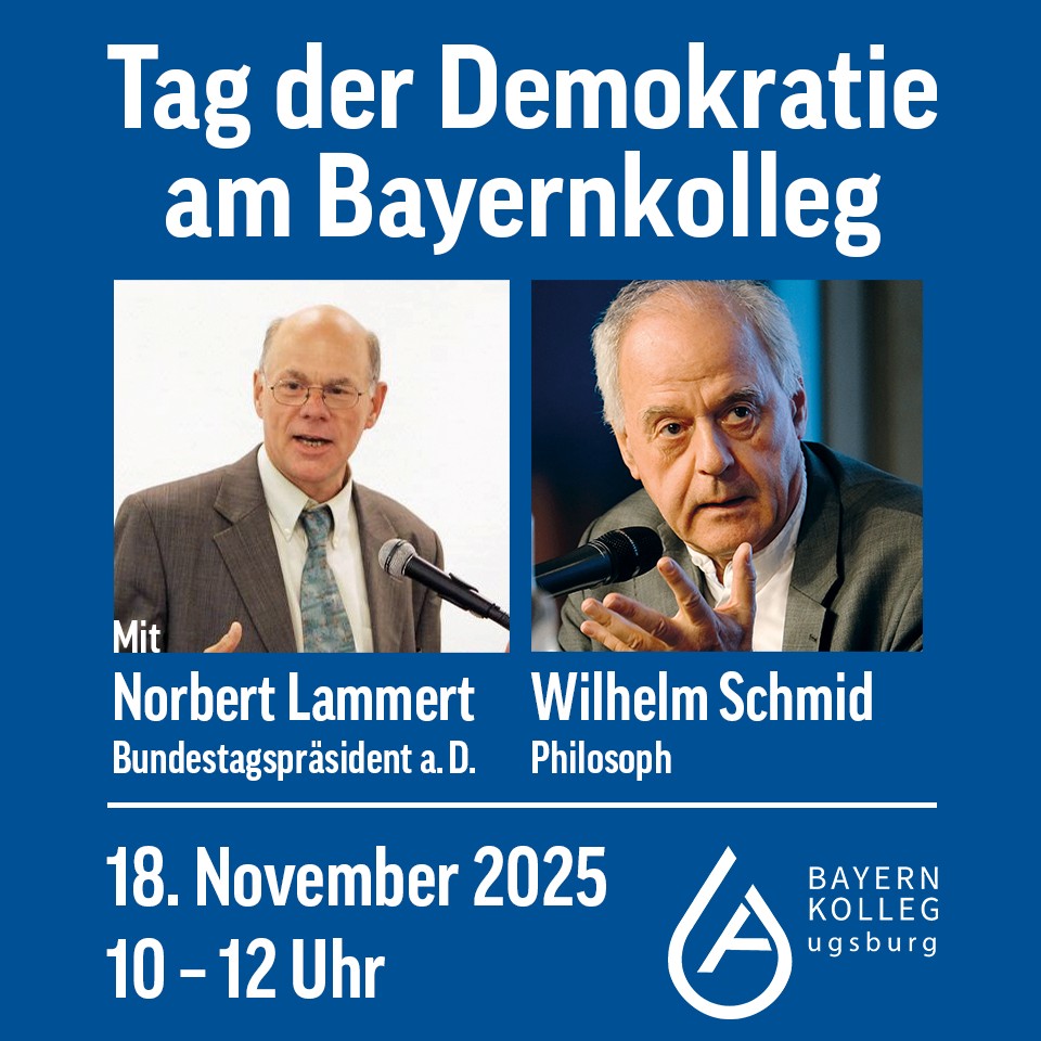 Bundestagspräsident a.D. Norbert Lammert und der Philosoph Wilhelm Schmid diskutieren am Bayernkolleg Augsburg, wohin sich unsere Gesellschaft bewegen könnte.